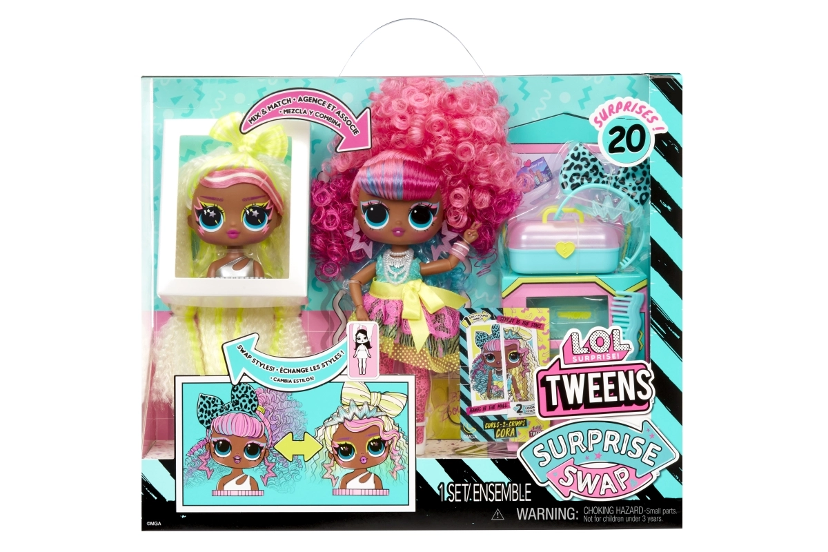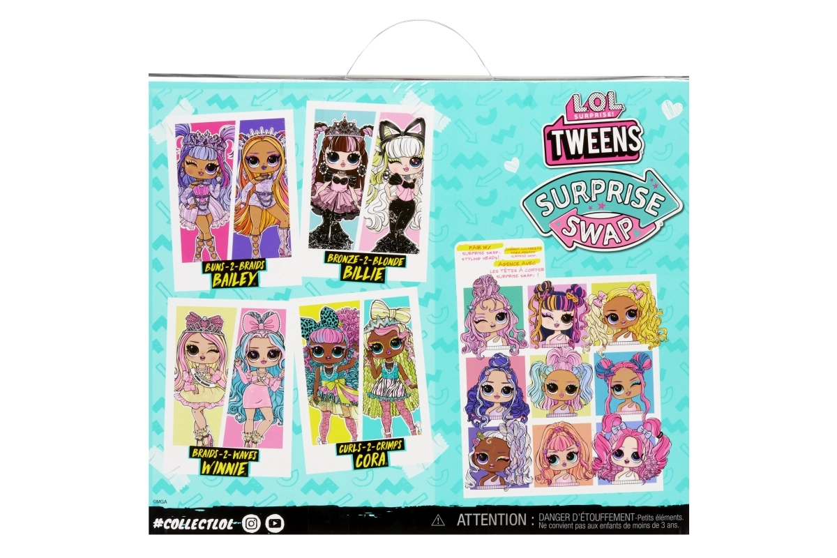 L.O.L. Surprise! Swap Tweens komplekts ļauj nomainīt lelles galvu, kas sniedz iespēju kombinēt stilus un izskatus atbilstoši noskaņojumam vai notikumam.
