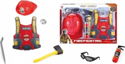 Kļūsti par varoni ar bērniem paredzētu ugunsdzēsēja komplektu, kurā ir viss nepieciešamais iedzīvināt aizraujošu ugunsdzēsēju spēli: veste, ķivere, cirtnis, brilles, ugunsdzēšamais aparāts, lauznis un nozīmīte.