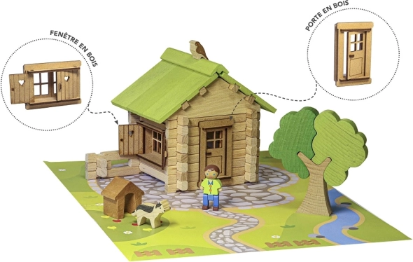 Uzbūvējiet savu mezoneta mājiņu no masīvkoka! Šis tradicionālais JEUJURA komplekts piedāvā 85 detaļas, kas krāsotas ar ūdenī šķīstošiem lakas pārklājumiem, un attīsta radošumu, sīko motoriku un telpisko uztveri. Ražots Francijā, iepakots praktiskā koferītī ar pārskatāmu instrukciju.