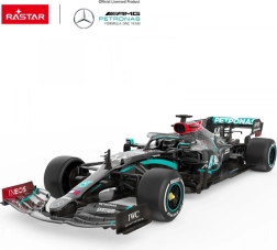 Izbaudiet sacīkšu azartu ar autentisku Mercedes-AMG F1 W11 EQ tālvadības modeli mērogā 1:12. Precīzs izpildījums ar komandas logotipiem, starta numuriem un aerodinamiskajiem elementiem iepriecinās F1 fanus. Uzticama vadība ar 2,4 GHz, gumijas riepām, kas saudzē grīdu, un izklaide, kas attīsta sīko motoriku un roku–acu koordināciju.