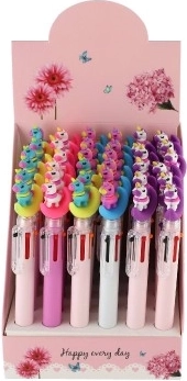 Iepazīstinām ar lielisko seškrāsu pildspalvu ar iecienīto vienradža dizainu, kas piedāvā lieliskas iespējas radošai izpausmei. Šī unikālā pildspalva ļauj viegli izvēlēties starp sešām tintes krāsām: melnu, sarkanu, oranžu, dzeltenu, zilu un violetu.