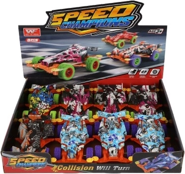 Bērni var izvēlēties starp četriem krāsu variantiem, kas padara šo komplektu lielisku kolekcionāriem. Katrā rotaļautomašīnā ir triecienizturīga konstrukcija, kas palielina jautrību, jo neviens šķērslis nekļūst nepārvarams.