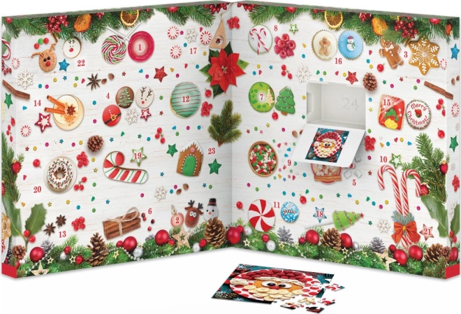Saīsini gaidīšanu līdz Ziemassvētkiem ar EUROGRAPHICS adventes kalendāru, kas slēpj 24 kvadrātveida puzles ar svētku motīviem, katra no 50 gabaliņiem. Katru dienu atver lodziņu un saliec jaunu attēlu – ātra izklaide bērniem un pieaugušajiem, kvalitatīvs izpildījums un atkārtoti izmantojams kalendārs nākamajam gadam.
