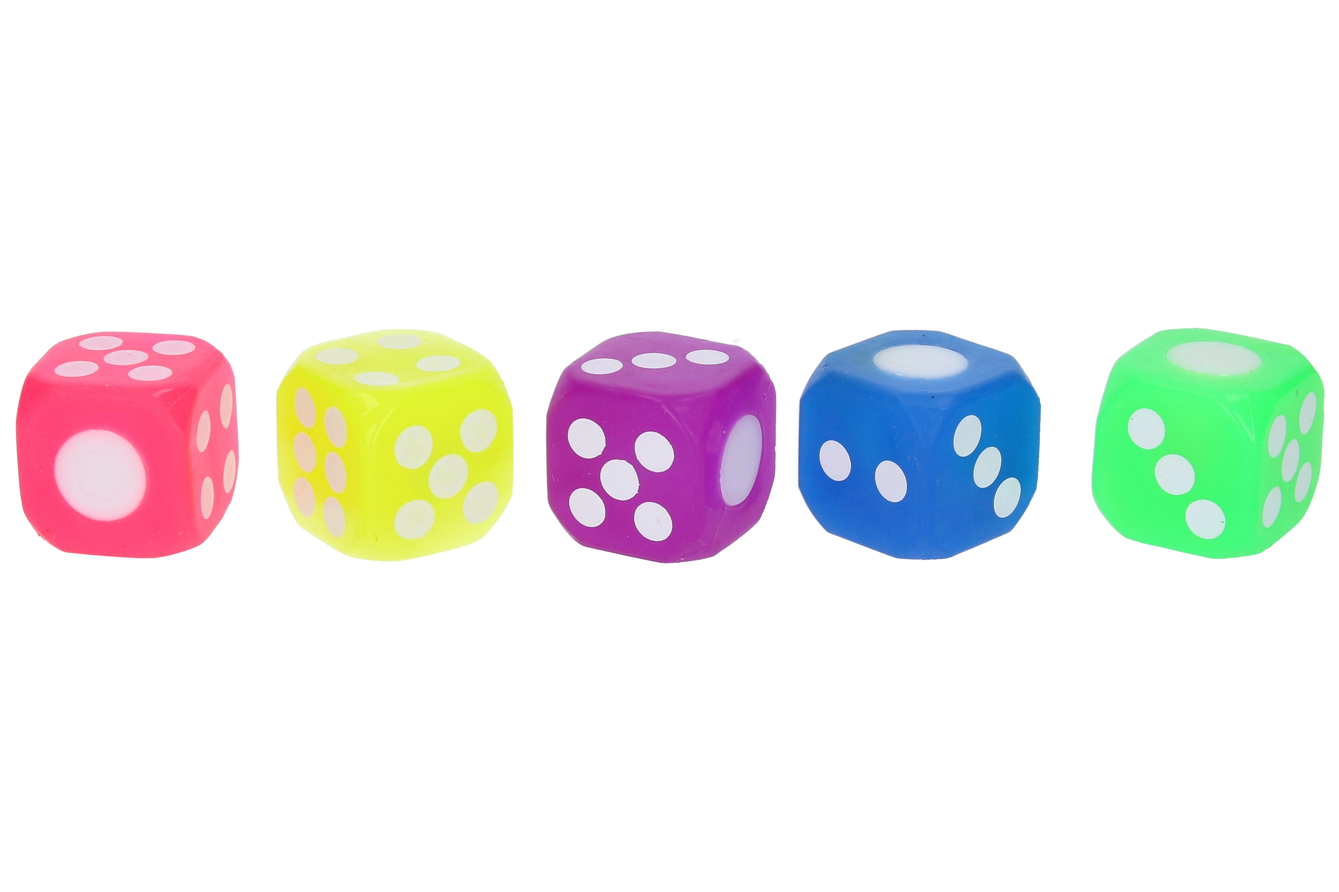 Izvēlieties no 6 pievilcīgām krāsām – oranža, zila, zaļa, dzeltena, violeta un rozā. Kauliņš tiek piegādāts display kastē pa 12 gabaliem, kas ir ideāli piemērots veikaliem, spēļu telpām vai lielākiem pasākumiem.