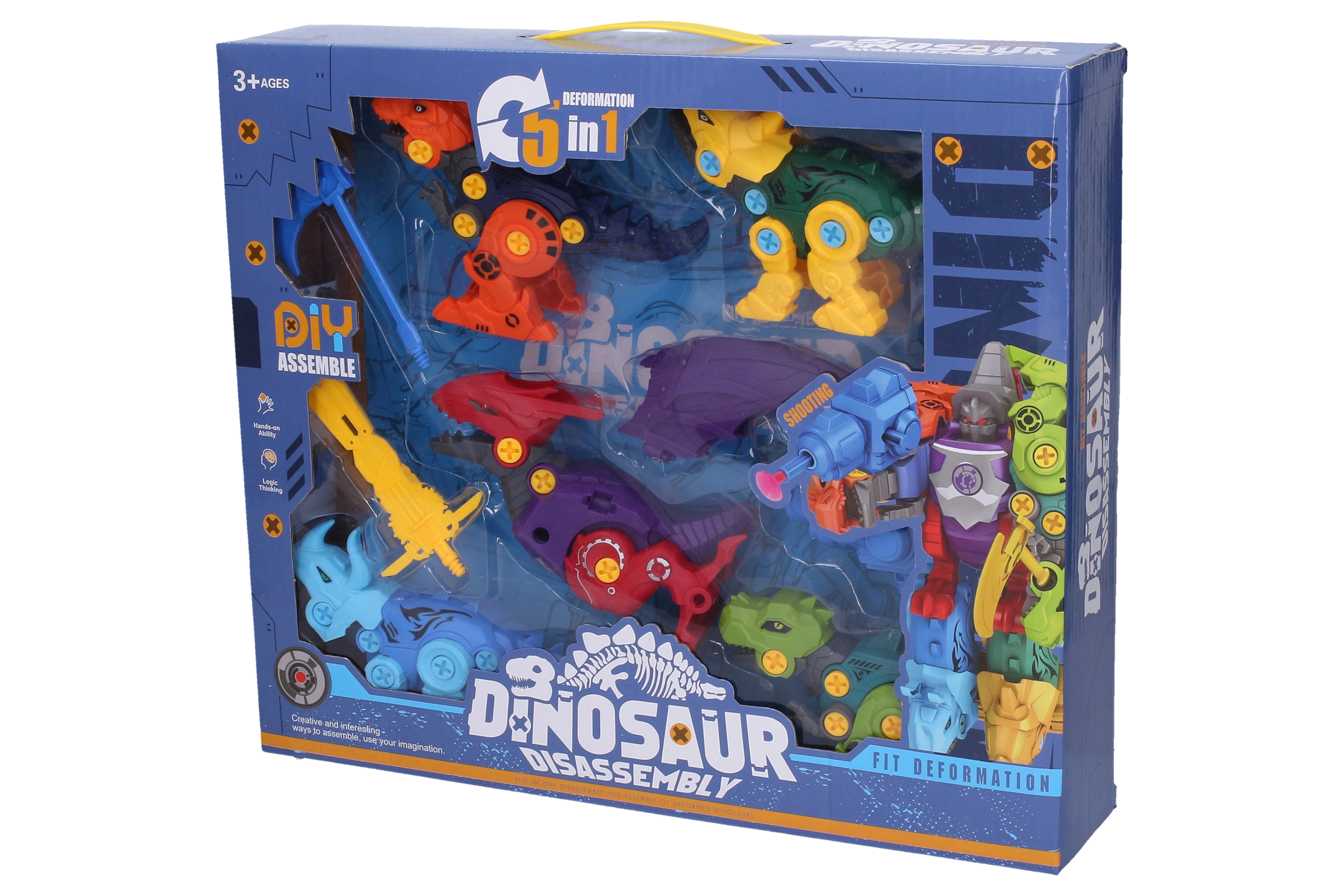 Atklājiet radošu izklaidi ar 5 skrūvējamu dinozauru komplektu, ko var viegli salikt un izjaukt. Savienojot visas detaļas, izveidosiet iespaidīgu robotu ar izšaujamu ieroci. Ideāli piemērots bērnu sīkās motorikas, loģiskās domāšanas un kreativitātes attīstīšanai. Kompaktie izmēri 20 × 20 × 25 cm atvieglo glabāšanu un pārnēsāšanu.