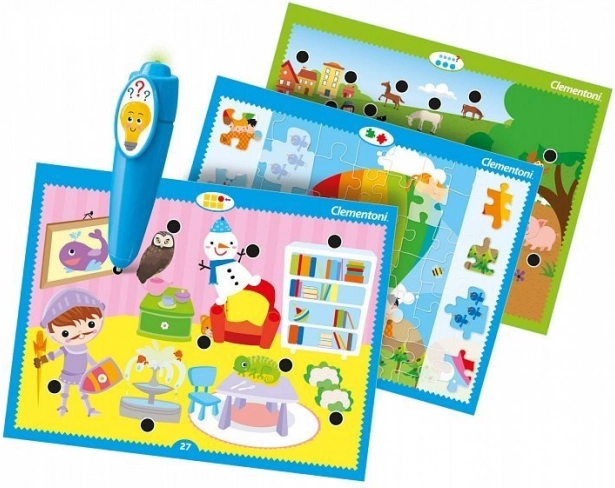 Izglītojošā spēle Mana interaktīvā pildspalva no Clementoni ir izstrādāta, lai attīstītu prasmes un apkārtējās pasaules uztveri bērniem 3–6 gadu vecumā. Tā piedāvā vairāk nekā 1000 viktorīnu un 120 izglītojošas aktivitātes, kas aptver plašu tēmu klāstu pirmsskolas vecuma bērniem.