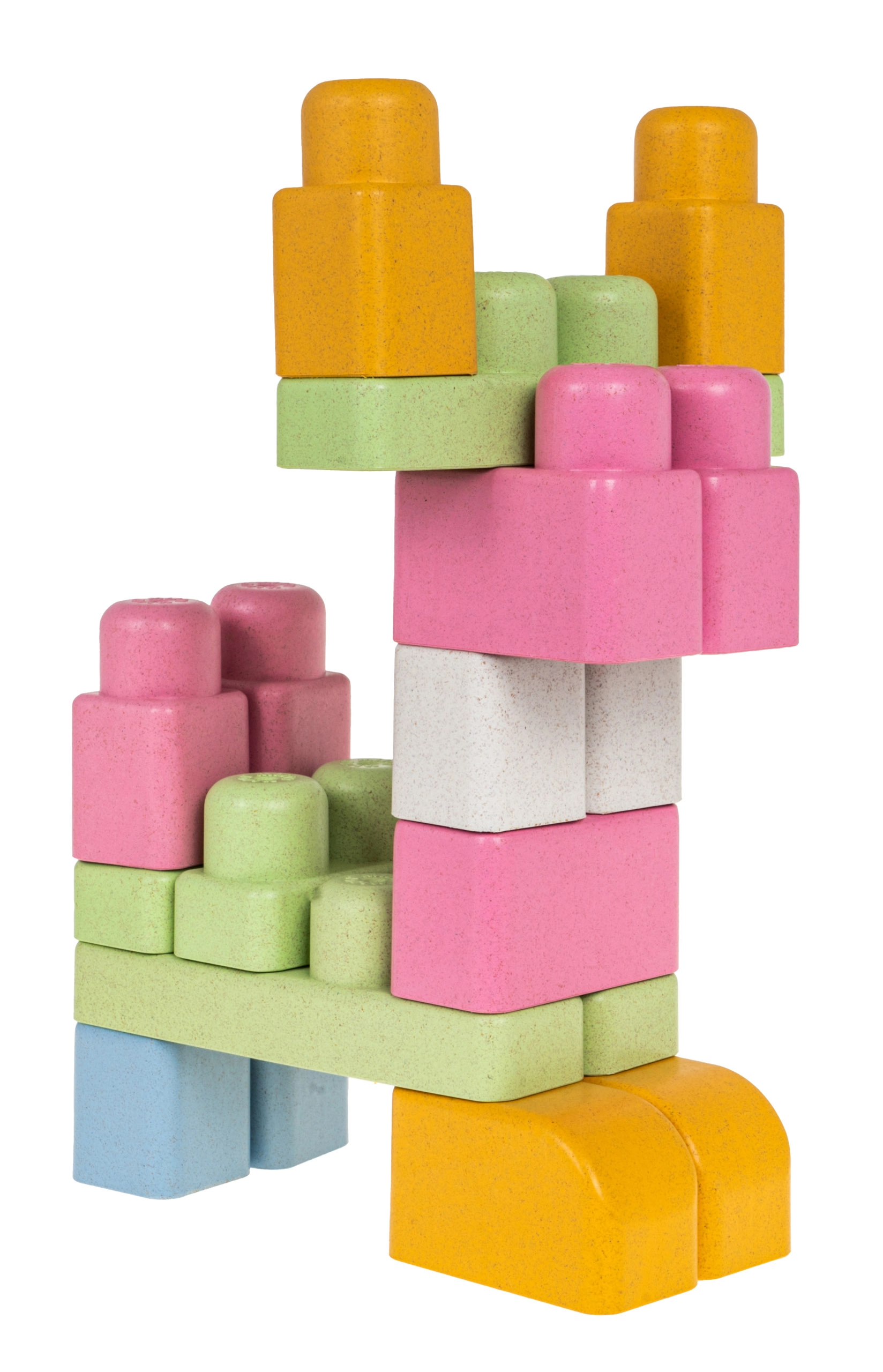 Komplektā ir 43 detaļas pasteļtoņos ar noapaļotām malām, kas ļauj bērnam veidot dažādas konstrukcijas.