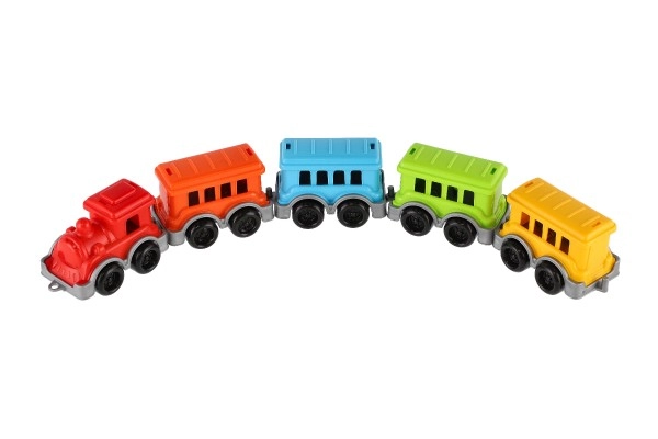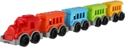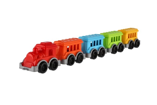 Krāsains plastmasas vilcieniņš ar lokomotīvi un 4 vagoniņiem patiks gan zēniem, gan meitenēm. Pateicoties kompaktam izmēram bērnu rokām, to ir viegli vadīt, tas attīsta sīko motoriku un iztēli un ir ideāli piemērots mājām un ceļošanai.