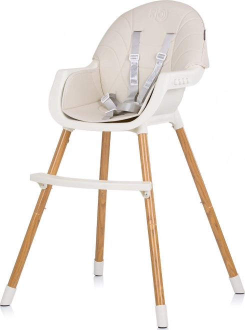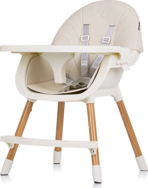 Ēdamkrēsliņš Rio 2in1 piedāvā elastīgas regulēšanas iespējas: to var izmantot gan kā augstu, gan zemu krēslu, un tas paredzēts bērniem, kuri sēž patstāvīgi. Pateicoties ērtajai sēdvietai ar ādas apdari, krēsliņu ir viegli tīrīt, turklāt tas interjeram piešķir mūsdienīgu izskatu. 5 punktu drošības jostas nodrošina maksimālu jūsu bērna drošību ēšanas laikā.