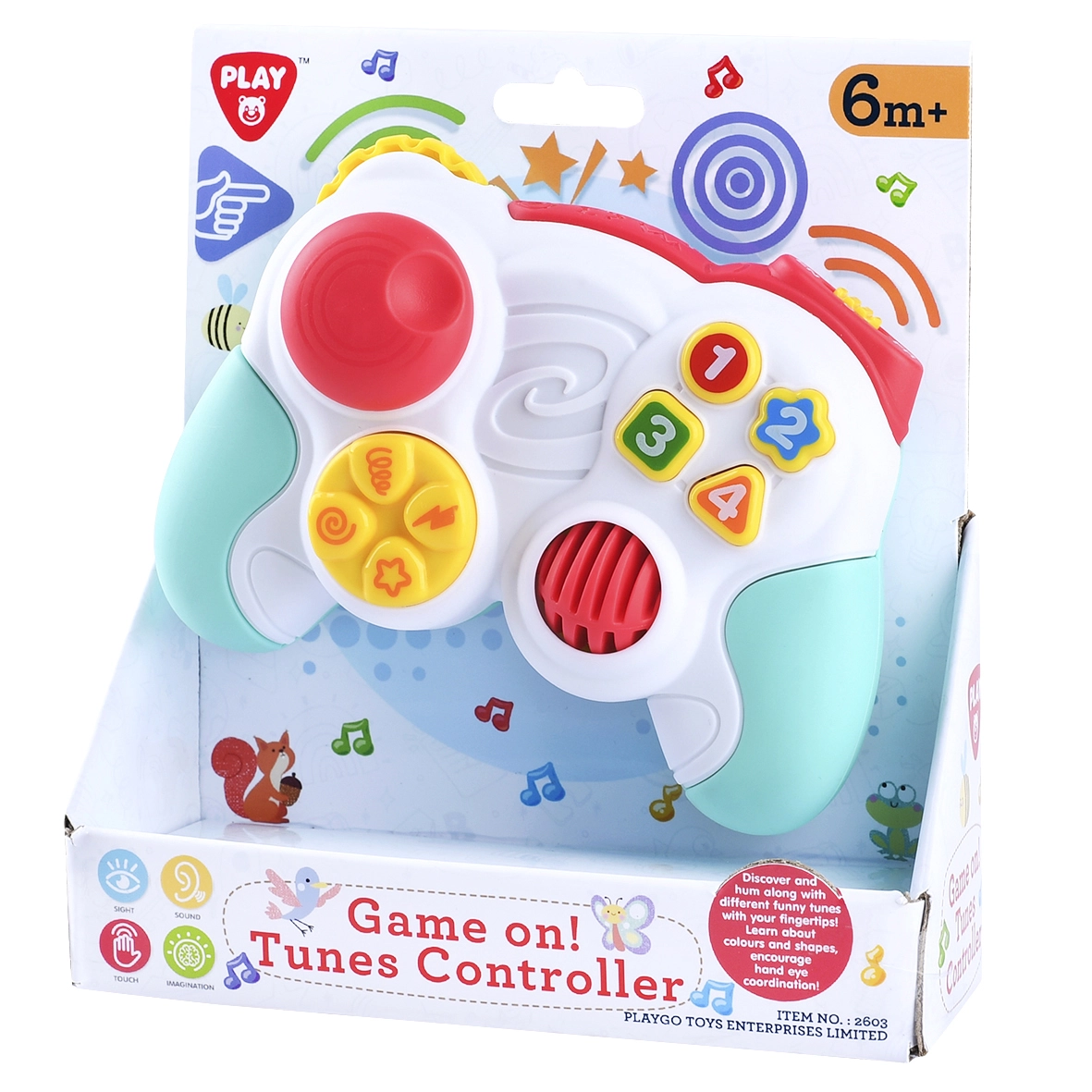 Šis mīlīgais PlayGo gamepads bērniem sniedz gaismu un skaņu pasauli drošā un jautrā veidā. Ergonomiskā forma mazām rociņām un pārskatāmie vadības elementi rosina ziņkāri, attīsta sīkās motorikas iemaņas un roku–acu koordināciju. Pateicoties kompaktajiem izmēriem 14,5 × 5,5 × 10,5 cm, to ir viegli turēt pat pašiem mazākajiem.