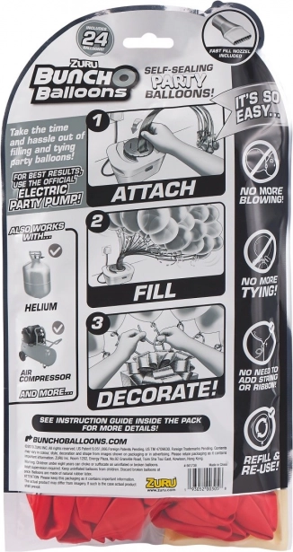 Atvieglojiet svinību sagatavošanu ar pašnoslēdzošiem ballīšu baloniem ZURU Bunch O Balloons. Pateicoties ātrai uzpildei un mezglu siešanas neesamībai, telpu izdekorēsiet dažu mirkļu laikā – pieslēdziet, piepildiet un rotājiet. Saderīgi ar hēliju un gaisa kompresoru, ideāli dzimšanas dienām, kāzām un bērnu ballītēm.