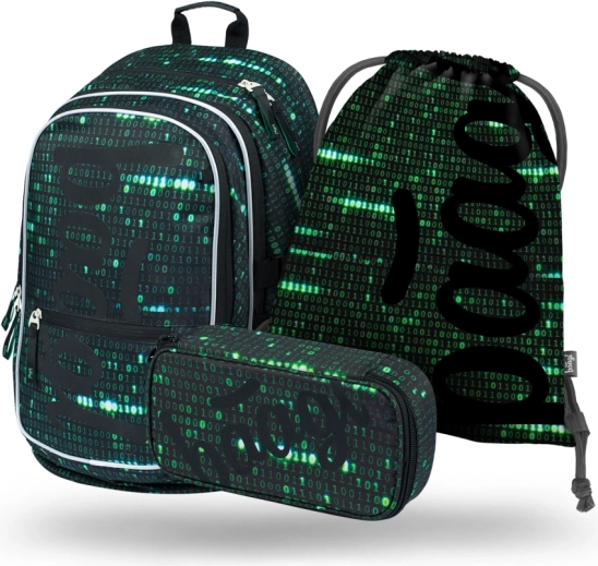 Komplekts Baagl Core Numbers nodrošina visu, kas skolēnam nepieciešams ērtām un organizētām mācībām. Ergonomiskā mugursoma ar trim atsevišķi aizveramiem nodalījumiem un iekšējo kabatu 15 collu klēpjdatoram piedāvā lielu 25 litru tilpumu un ir izgatavota no ūdensizturīga materiāla. Mugursoma ir ļoti viegla — tikai 900 g, ar nestspēju 7 kg. Komfortu nodrošina regulējamas plecu, krūšu un sānu kompresijas siksnas, bet lielākai drošībai ir atstarojoši elementi. Komplektā ietilpst stilīgs piekariņš, un mugursoma ir testēta akreditētā laboratorijā.