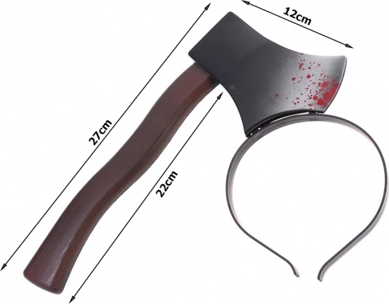 Šis atjautīgais kostīma aksesuārs rada optisko ilūziju, ka cirvis iet cauri galvai – efekts ir pilnīgi drošs un ārkārtīgi iespaidīgs. Pateicoties vieglajai konstrukcijai un elastīgajai matu stīpai, to ir ērti nēsāt arī ilgāku laiku, un tā droši turas savā vietā.