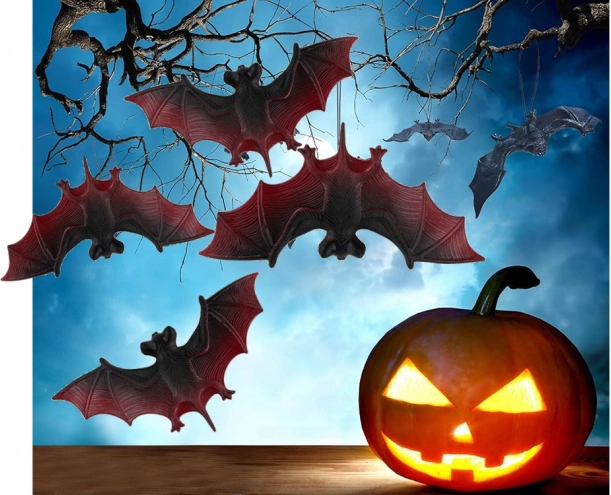 Izveidojiet biedējošu Helovīna noskaņu dažu mirkļu laikā! Šis 4 realistisku sikspārņu komplekts no izturīgas plastmasas/gumijas ir ideāli piemērots mājai, dārzam un ballītēm. Vienkārši piekariniet tos pie zara, mākslīgām zirnekļu tīklam līdzīgām dekorācijām vai plaukta un iegūsiet efektīgas dekorācijas ar izteiksmīgiem melni‑sarkaniem spārniem.