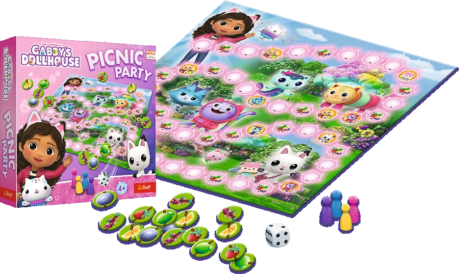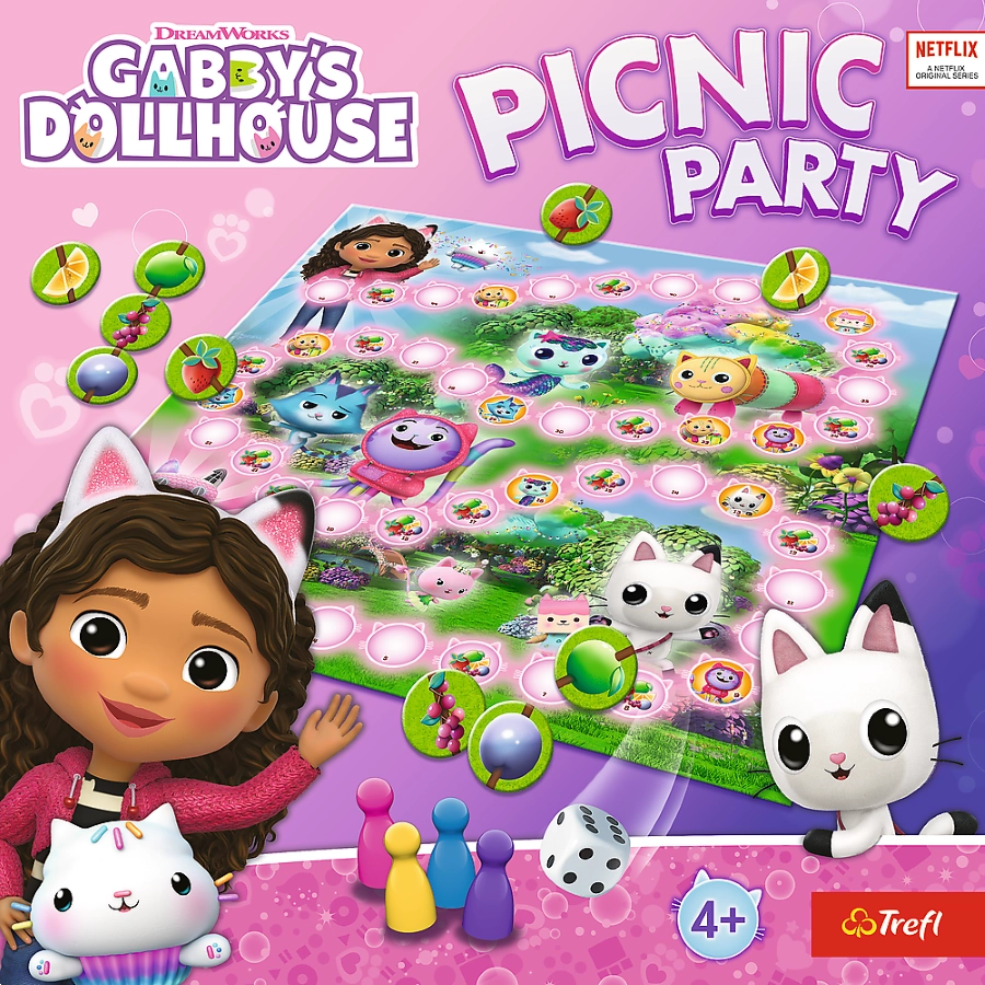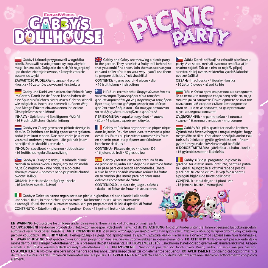 Gābijas burvju namiņš: Piknika ballīte ir aizraujoša galda spēle, kurā Gābija un viņas draugi rīko dārza piknika ballīti. Vāc atrastos augļus un izveido gardus augļu iesmiņus!