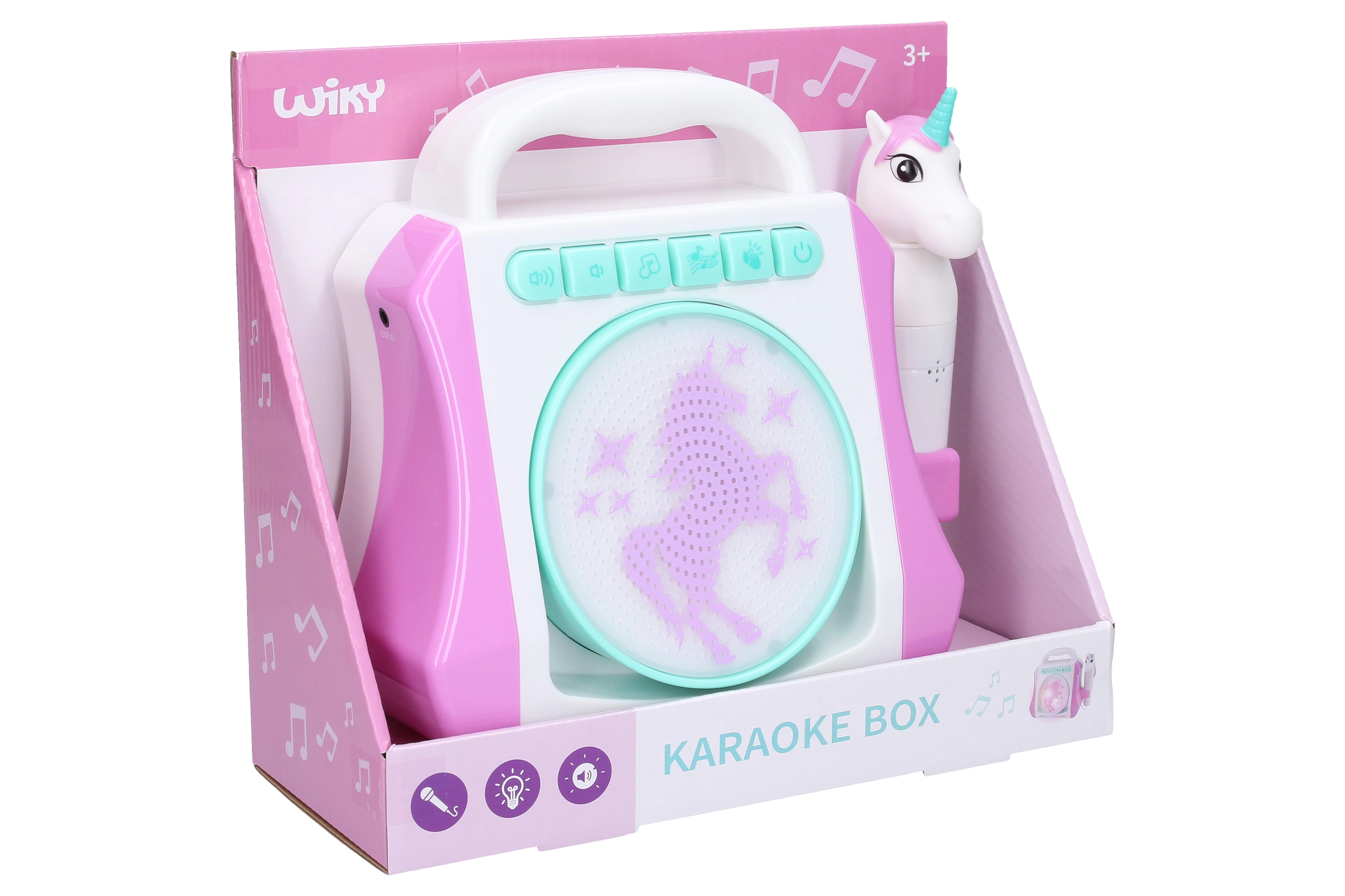 Ieniriet mūzikas un fantāzijas pasaulē ar vienradža formas karaokes kasti. Šis funkcionālais mikrofons ļauj dziedāt līdzi 16 ritmiem un 8 melodijām, kamēr gaismas efekti piešķir priekšnesumam īsto atmosfēru.