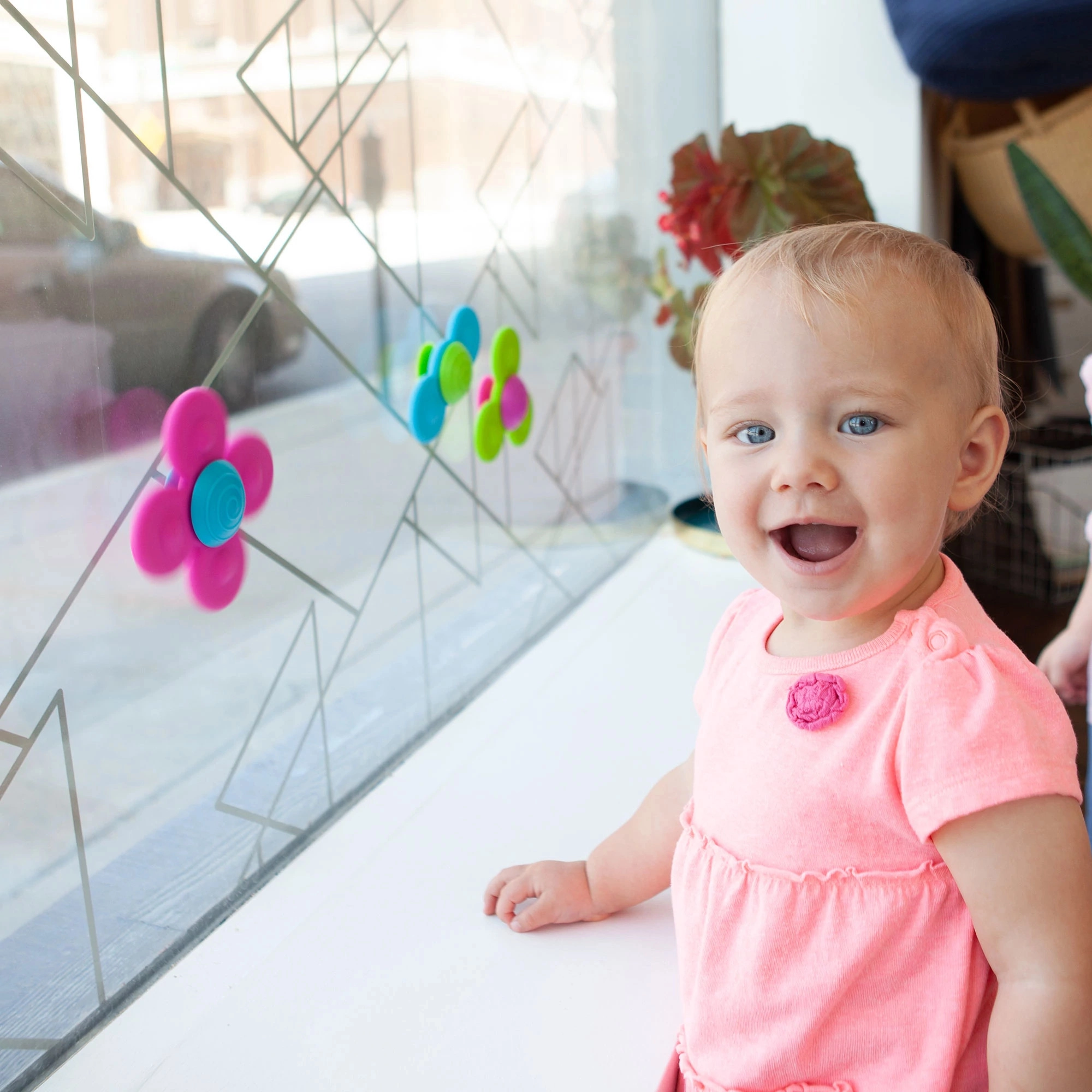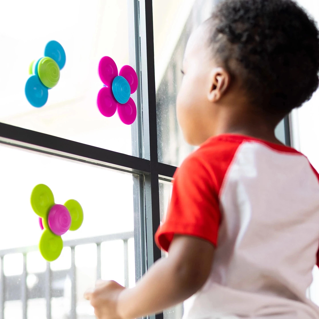 Spinnerus vienkārši piestipriniet pie loga, flīzēm, vannas vai barošanas krēsliņa, un bērni varēs rotaļāties jebkur mājās vai ceļā.