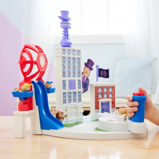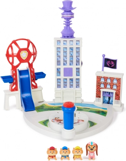 Komplektā ir arī liels slidkalniņš pie PAW Patrol torņa, kontroles telpa un vairākas spēļu zonas brīvai rotaļai un filmu PAW Patrol: The Mighty Movie ainu atveidošanai. Krāsainas figūriņas ar mīlīgām sejas izteiksmēm un izturīgas plastmasas detaļas ir paredzētas bērnu rokām un ikdienas jautrībai.