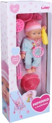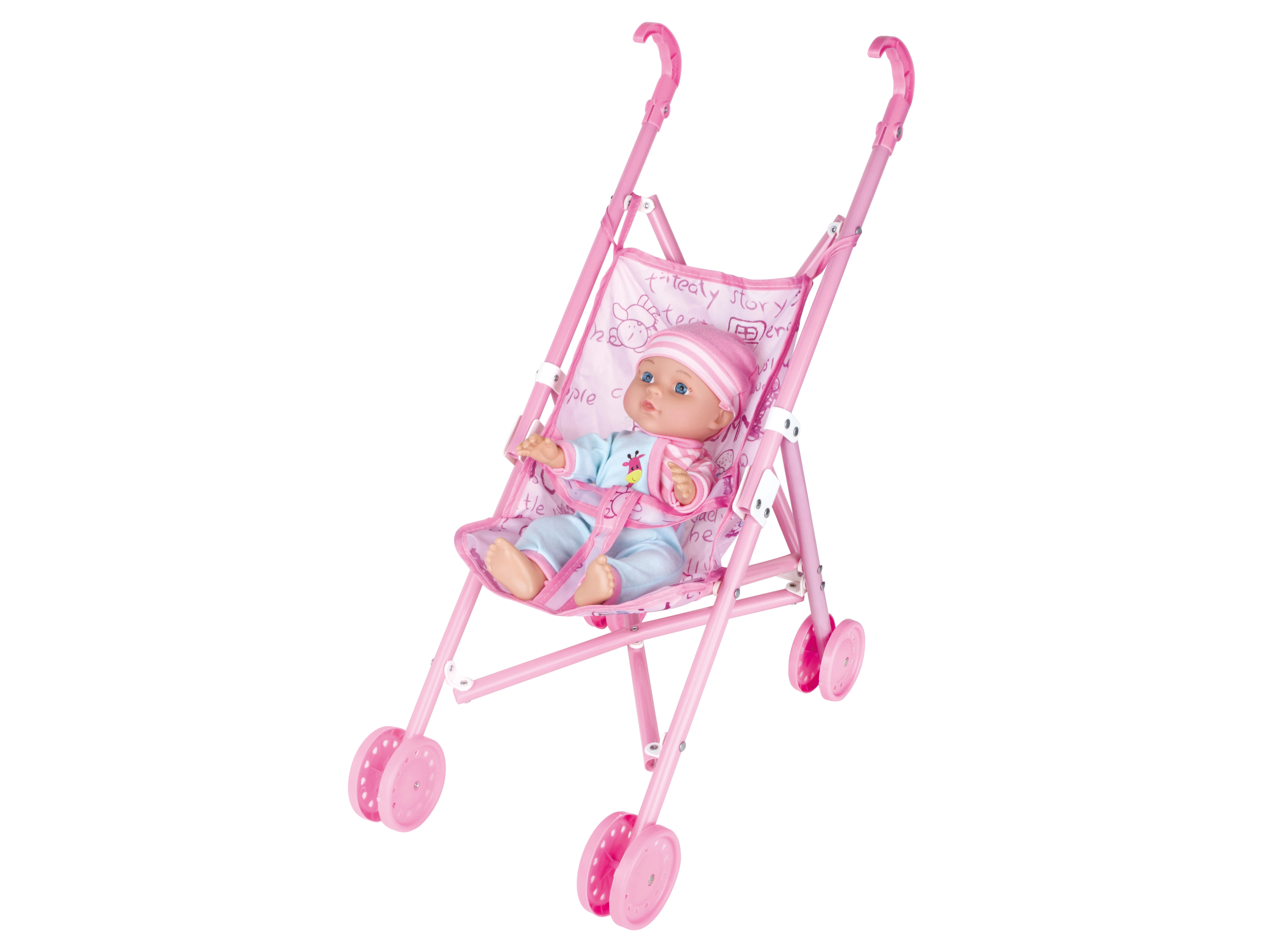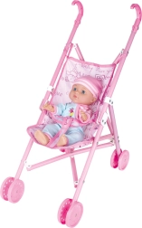 Mīlīgs bērniņš ar skaņas efektiem un salokāmiem ratiņiem iepriecinās ikvienu mazo aprūpētāju. Komplektā ir bagātīgs piederumu klāsts spēlēšanai – mazuļa ratiņi, bļodiņa ar piederumiem, nakts podiņš un pudelīte. Nospiežot vēderiņu, atskan skaņas efekti. Baterijas 3× AG13 ir iekļautas iepakojumā.