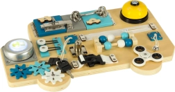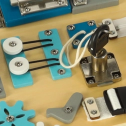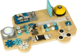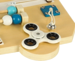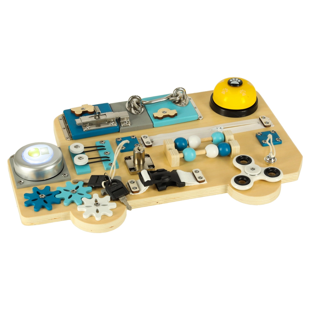 Spēlējoties ar tāfeli, tiek attīstīta acs–roka koordinācija, trenēta koncentrēšanās un stiprinātas ikdienas prasmes – no rāvējslēdzēja aizvēršanas līdz darbam ar atslēgu un aizbīdni. Pateicoties izturīgajiem materiāliem, tāfele ir lieliska izvēle gan mājās, gan rotaļu istabās.