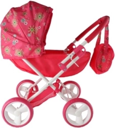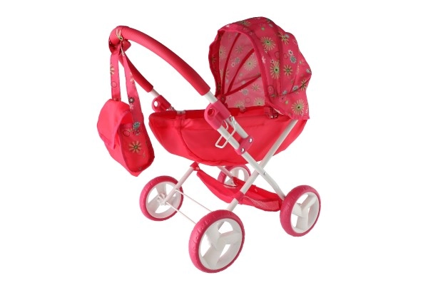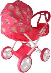 Rozā krāsas un ziedu raksta apvienojums padara šos ratiņus ne tikai funkcionālus, bet arī stilīgu aksesuāru katram bērnam.