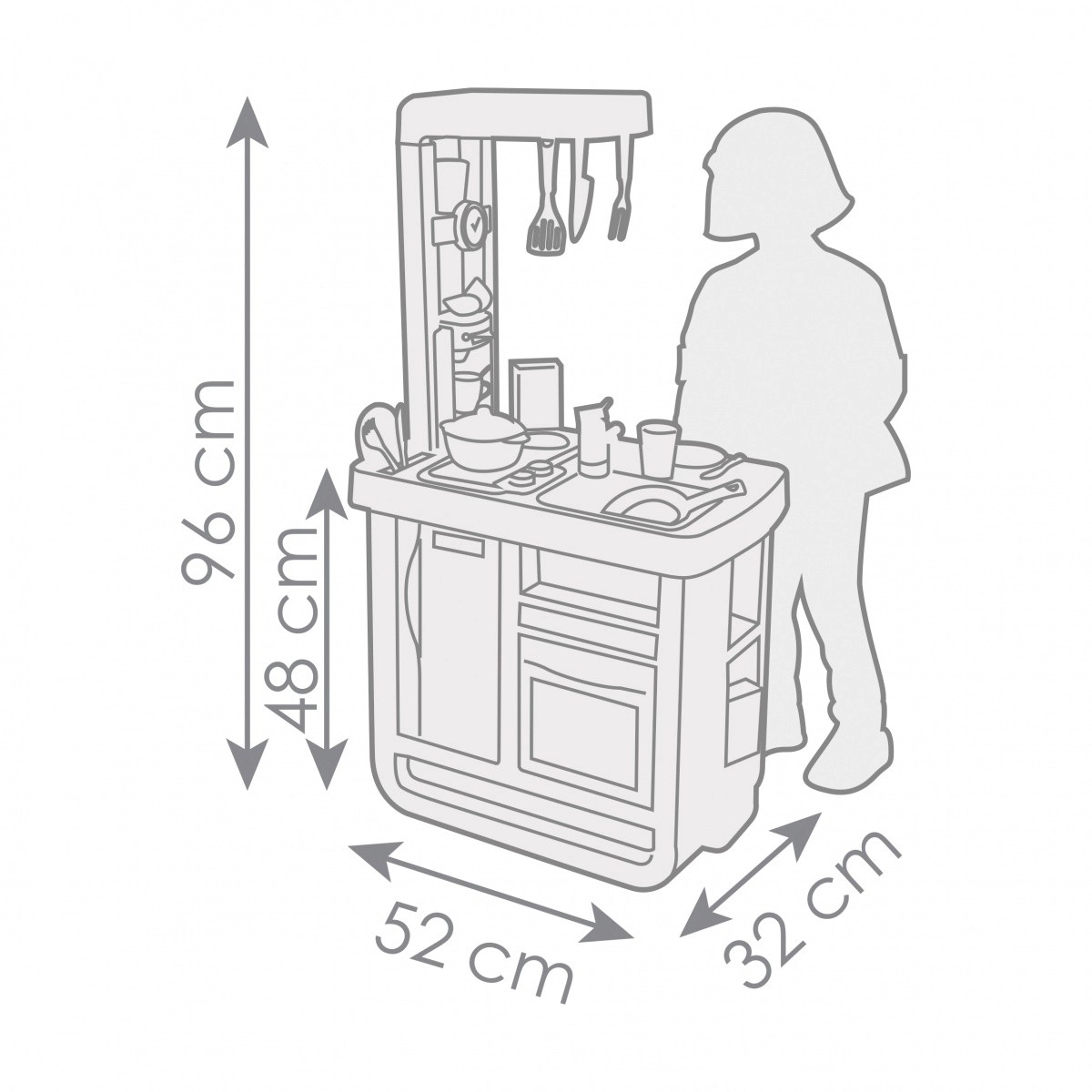 Tā pieejama maigos pasteļtoņos, kas harmoniski sader ar jebkuru interjeru. Vecākus un bērnus iepriecinās bagātīgais aprīkojums: plīts ar 2 riņķiem, cepeškrāsns ar atveramām durvīm, ledusskapis, izlietne ar jaucējkrānu un kafijas automāts. Elektroniskais skaņas modulis pastiprina spēles realitāti ar gatavošanas skaņām, sniedzot bērniem vēl lielāku prieku.