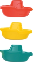Padariet bērnu peldēšanos aizraujošāku ar rotaļīgu trīs krāsainu laiviņu komplektu. Iepakojumā ir 3 gabali krāsās zaļa, oranža un dzeltena, kuras var viegli savienot, smelt ūdeni un peldināt pa ūdens virsmu. Ideāli izklaidei vannā un sīkās motorikas attīstībai.