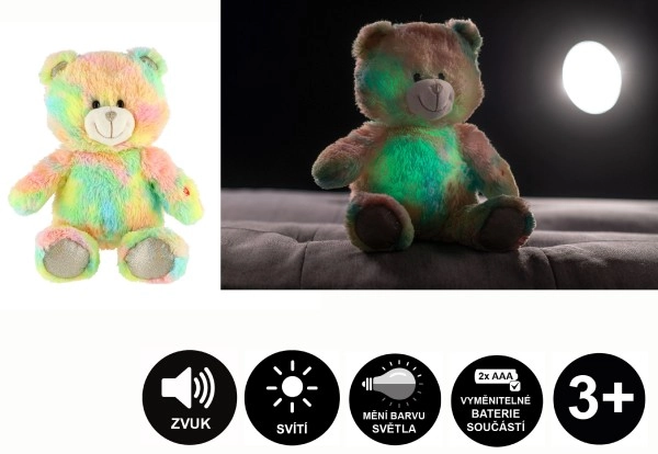 Lācītis ir ne tikai īpaši mīksts pieskārienam, bet arī izgaismo tumsu ar mainīgām krāsām, radot pasakainu noskaņu. Nospiežot ķepu, sāk skanēt relaksējoša melodija, kas nomierina ikvienu bērnu.