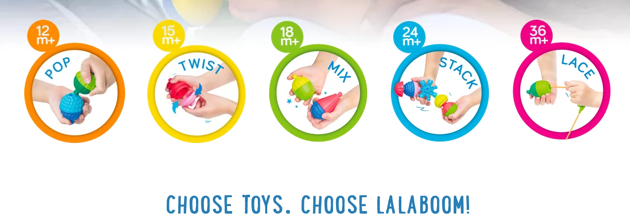 Lalaboom konstruktors ir unikāla izglītojoša rotaļlieta, kas palīdz attīstīt visas bērna maņas – īpaši redzi, dzirdi un tausti. Bērniem ir iespēja mācīties un atklāt apkārtējās pasaules iespaidus savā tempā, pateicoties daudzveidīgajām krāsām, formām un tekstūrām, kas nodrošina dažādus taustes iespaidus.