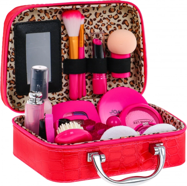 Stilīgā kosmētikas somiņa mazajām princezēm slēpj pilnu rotaļu grima un piederumu komplektu. Pateicoties elegantajam izpildījumam no mīkstas eko ādas, četrām kājiņām apakšā un iekšējam spogulītim, tā ir ne tikai skaista, bet arī praktiska. Bērni var atdarināt pieaugušos un attīstīt savu fantāziju – un tas viss droši, jo produkti ir tikai dekoratīvi atdarinājumi.