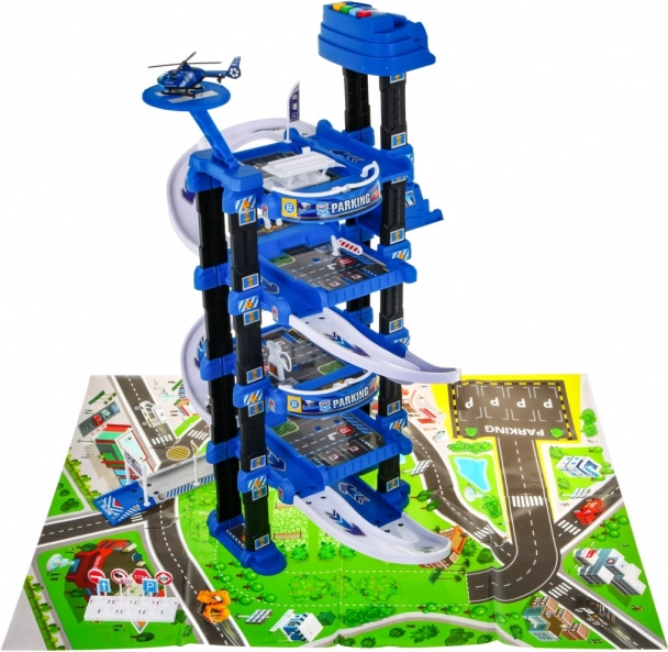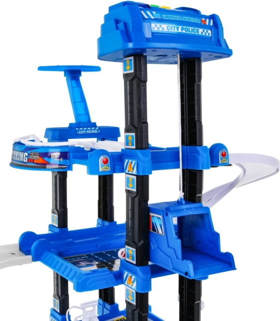 Šī izturīgā, daudzstāvu policijas stāvvietas garāža apvieno jautru braukšanu pa rampām ar funkcionālu liftu, kas pārvietojas augšup un lejup un ko pavada mirgojošas gaismas un skaņas efekti (barošana ar 3× AA, nav iekļautas). Augšējā līmenī ir heliports, zemākajos stāvos ir stāvvietas un caurbrauktuves.