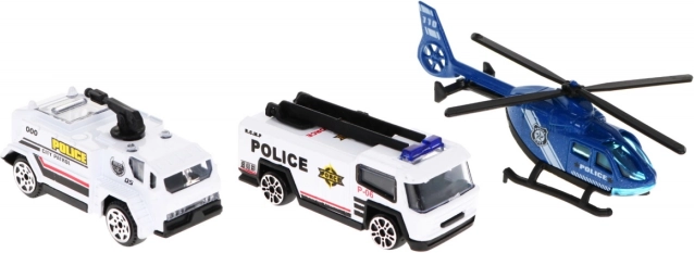 Komplektā ir rotaļu paklājs ar ielu un ēku apdruku, kas paplašina spēļu pasauli un atvieglo satiksmes scenāriju veidošanu. Pateicoties iekļautajām zīmēm, mašīnītēm un helikopteram, bērni var viegli izveidot savu policijas pilsētu un spēlējoties apgūt satiksmes noteikumu pamatus.