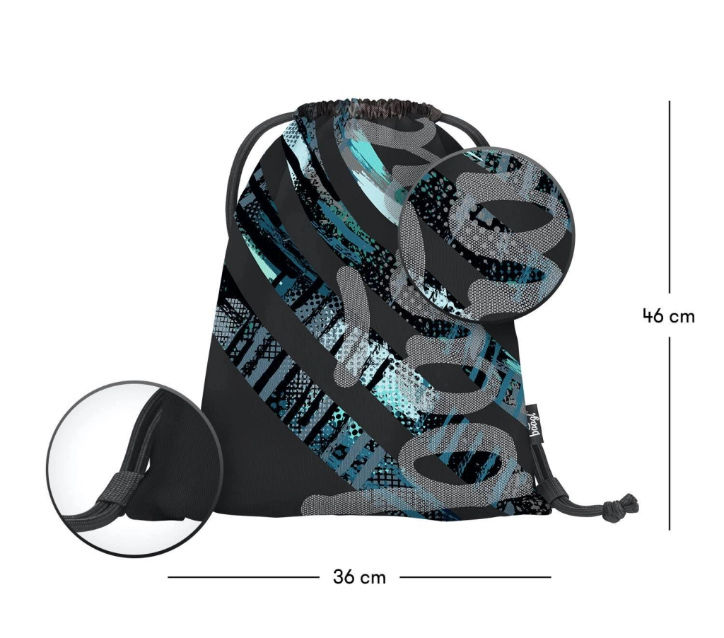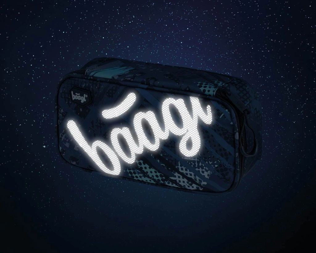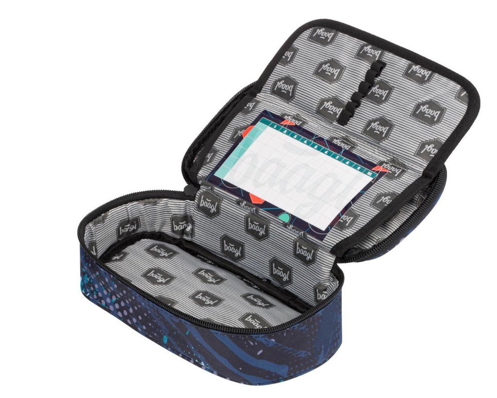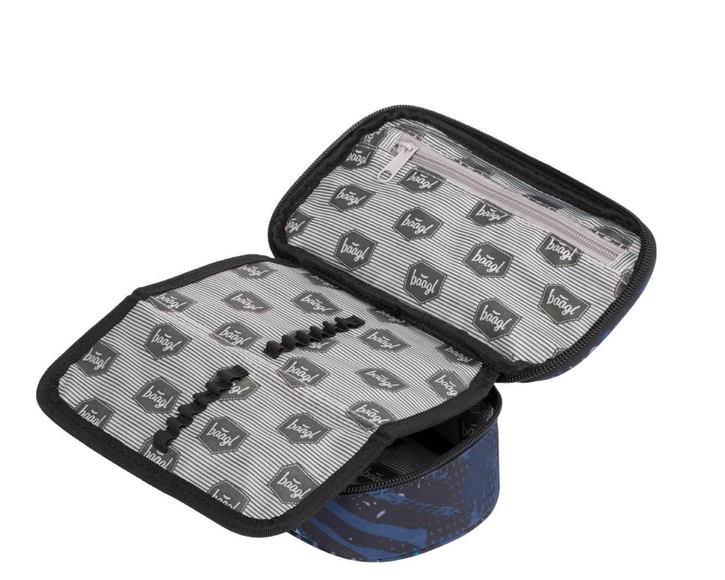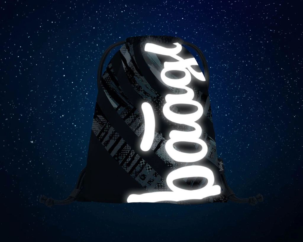 Penālis ar izvelkamu pārsegu, kabatu ar rāvējslēdzi un stundu sarakstu palīdz uzturēt rakstāmpiederumus pārskatāmi. Maisiņš ar savelkamu auklu nēsājams uz muguras, tam ir spīdošs BAAGL logotips, un tas ir ideāli piemērots apaviem vai sportam.