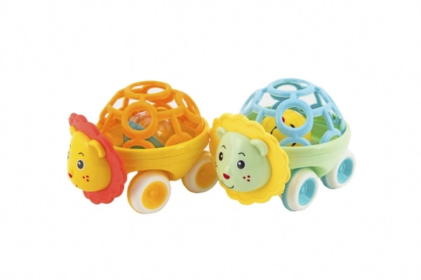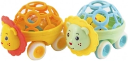 Mīlīgs plastmasas grabuliņš auto formā ar dzīvnieciņu ir ideāla pirmā rotaļlieta mazuļiem no 3 mēnešu vecuma. To ir viegli satvert, tas ir viegls un, pateicoties brīvgaitai, maigi ripo. Veicina smalkās motorikas attīstību, sensoro uztveri un pirmo acu–roku koordināciju. Pieejams divās krāsu versijās.