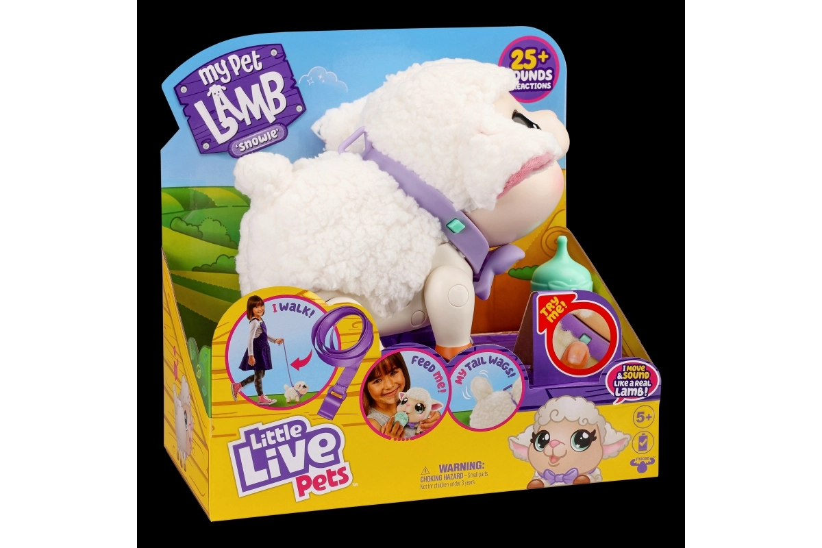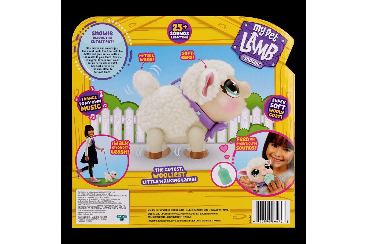 Atklājiet interaktīvās aitiņas Snowie burvību — viņa uzvedas kā īsts jēriņš. Viņa spēj pārvietoties, ejot kustina astīti un reaģē, kad viņu paglauda vai pabaro ar pudelīti. Pateicoties savām pūkainajām ausīm un mīkstajam kažociņam, bērni viņu iemīlēs uzreiz.