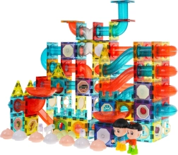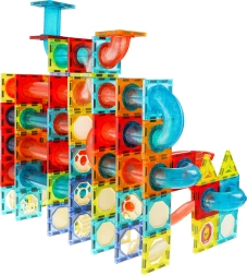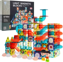 Šis lielais magnētiskais komplekts (292 detaļas) bērniem piedāvā stundām ilgu izklaidi un mācīšanos. Pateicoties izturīgiem magnētiskajiem savienojumiem, top stabilas konstrukcijas un košas lodīšu trases ar gaismas efektiem. Komplektā ir ar baterijām darbināmas detaļas, kas izgaismo trasi un lodītes vairākos mirgošanas režīmos — bērni var viegli izvēlēties spēles tempu un stilu.