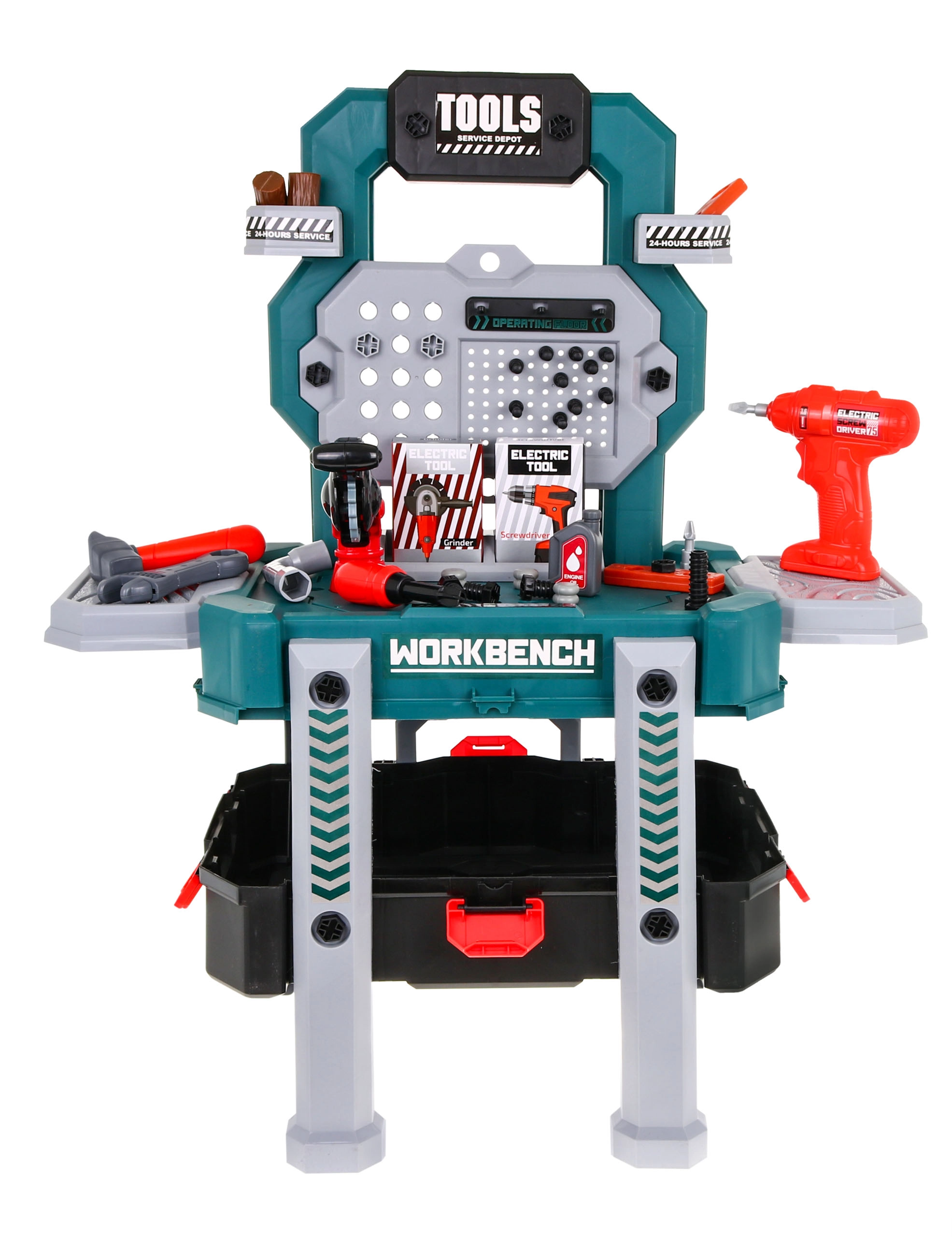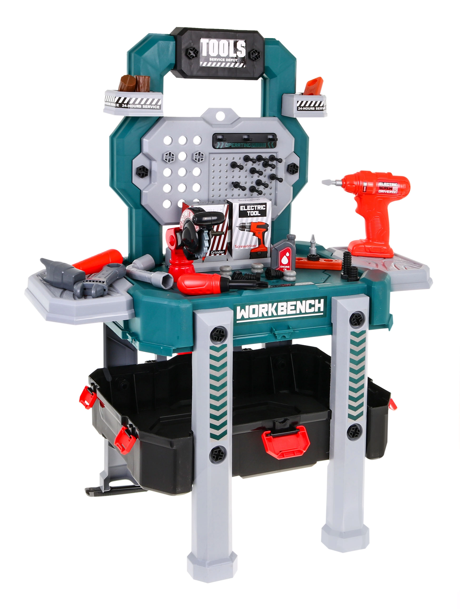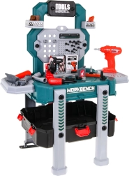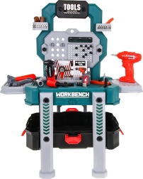 Atklājiet universālu meistarošanas komplektu, kas acumirklī pārtop no pārnēsājama kofera par stabilu darba statīvu ar glabāšanas nodalījumiem. Bērni izbaudīs reālas skaņas no urbja–skrūvgrieža ar diviem maināmiem uzgaļiem un drošā, rotaļīgā veidā izmēģinās darbu ar instrumentiem.