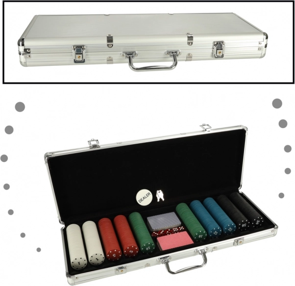 Pokera komplekts nodrošina visu nepieciešamo ilgām un aizraujošām spēlēm, pateicoties 500 žetoniem, divām kāršu kavām un citiem piederumiem.