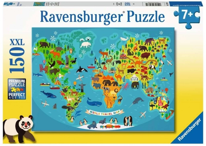 RAVENSBURGER puzle ar pasaules kartes un savvaļas dzīvnieku tēmu iepriecinās visus mazos pētniekus. Ar 150 XXL gabaliņiem tā ir ideāli piemērota bērniem, kuri vēlas attīstīt savas prasmes un uzzināt jaunu informāciju par dabu un ģeogrāfiju. Saliktā attēla izmērs ir apmēram 49 × 36 cm, tāpēc tas lieliski ietilpst uz galda vai paliktnī.