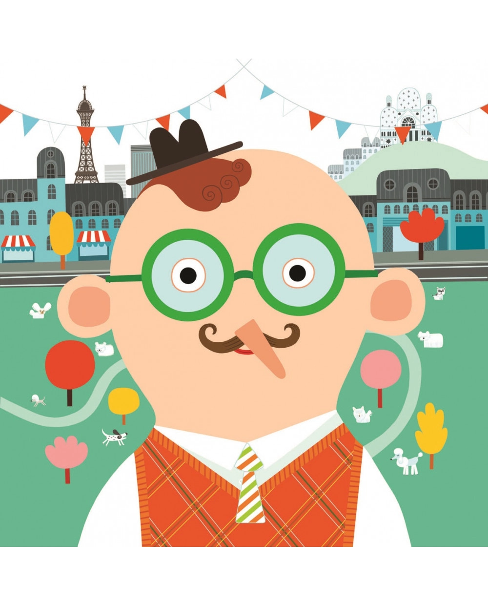 Pārvērtiet parastas sejas oriģinālos darbos. Šis Djeco radošais komplekts satur 16 lapas ar veidnēm un bagātīgu 240 noņemamu uzlīmju komplektu, ar kurām bērni viegli kombinē sejas izteiksmes, aksesuārus un krāsas. Pateicoties atkārtotai pielīmēšanai, var izmēģināt neskaitāmas variācijas un trenēt gan fantāziju, gan pacietību.