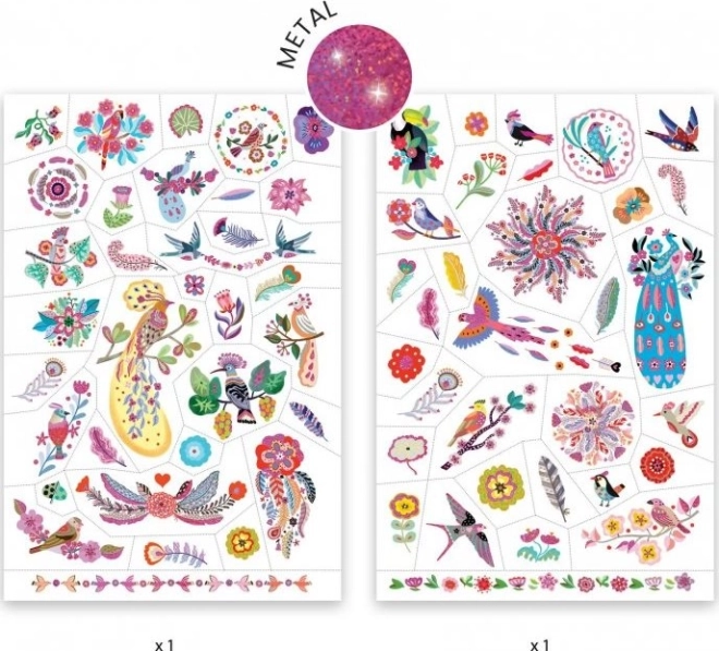 Atklājiet krāsaino pagaidu tetovējumu burvību ar spīguļojošu putniņu motīviem no DJECO. Bērniem patiks rotaļīgās ilustrācijas un maigs mirdzums, kas izceļas uz ādas. Tetovējumi tiek viegli uzklāti ar ūdeni, ātri nožūst un labi turas.