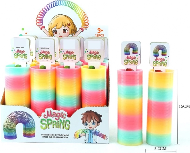 Varavīksnes spirāle Magic 15 cm ir vienkārša, taču neticami aizraujoša rotaļlieta, kas bērnus izklaidēs stundām ilgi. Pateicoties spilgtajām krāsām un elastīgajam materiālam, tā sniedz kustību prieku un atklāšanas sajūtu. Ideāli piemērota brīvai spēlei, koordinācijas attīstīšanai un nomierināšanai pēc saspringtas dienas.