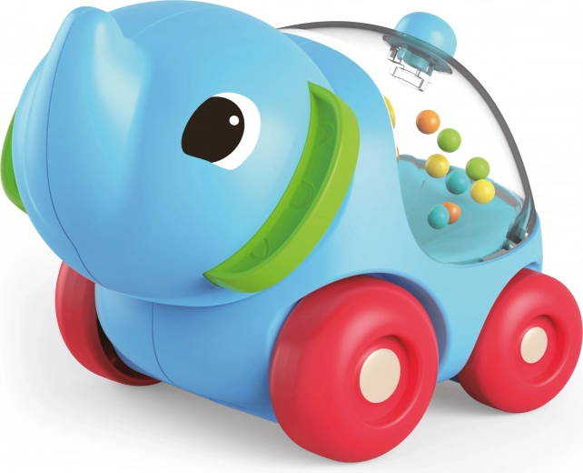Šis košais zilonīša grabulis uz ritenīšiem ir ideāls pirmais braucamais mazulīšiem. Kustoties tas izdod grabēšanas skaņu, kas motivē bērnus atklāt, rāpot un pirmo reizi stumt rotaļlietu sev priekšā.