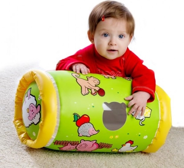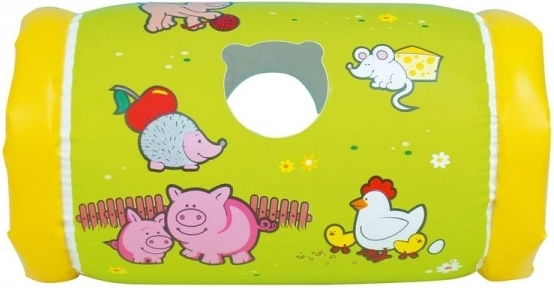 Izklaides pilns un drošs uzpūšams veltnis pašiem mazākajiem, kas veicina rāpšanos, stabilitāti un pirmos mēģinājumus celties kājās. Iekšpusē ir trīs zvārguļi, kas kustības laikā maigi skan un motivē bērnu darboties. Izstrādājums ir bez ftalātiem un sertificēts, piemērots no 6 mēnešu vecuma.