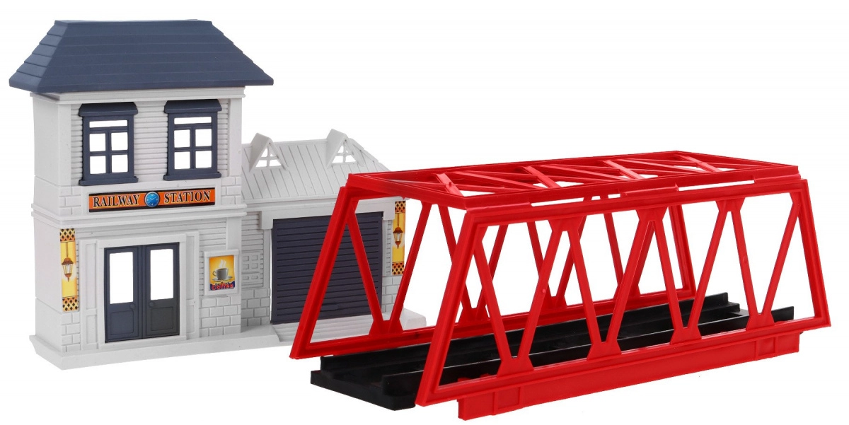 Satur visu nepieciešamo, lai izveidotu savu dzelzceļa trasi, tostarp lokomotīves, stacijas un dekoratīvus elementus.