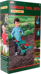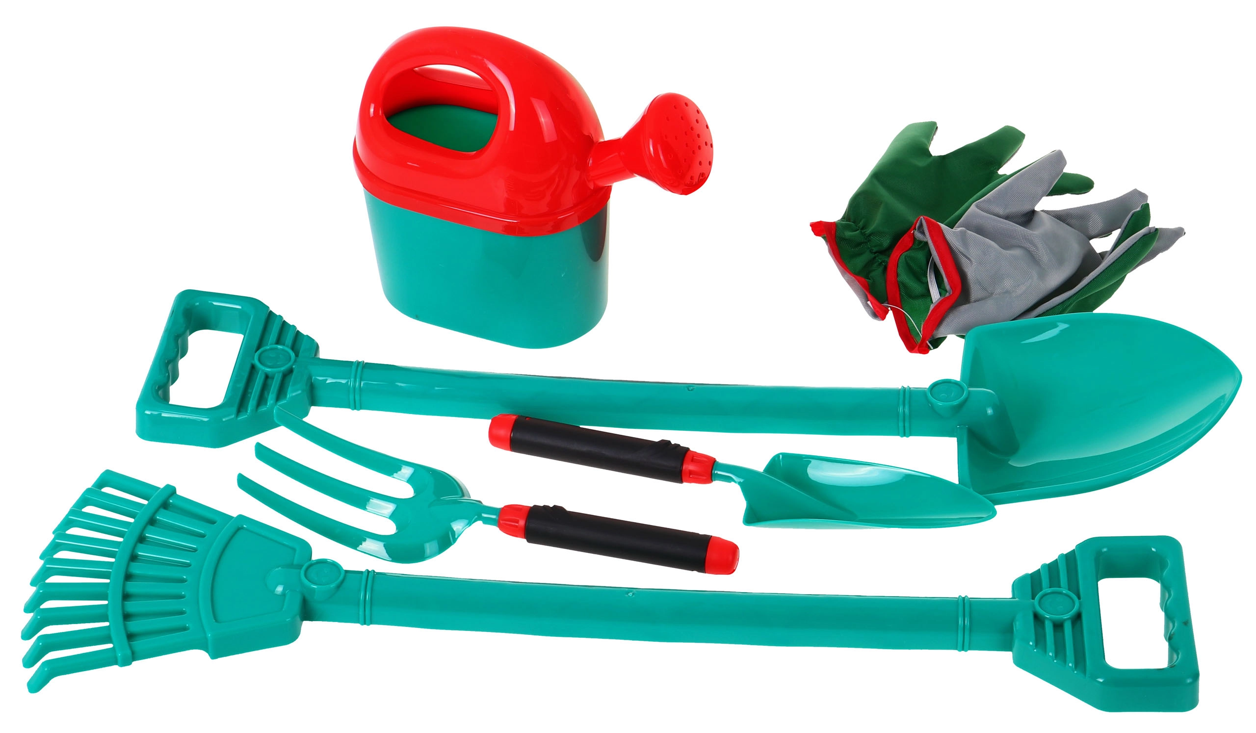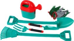 Lāpsta, grābekļi, dakšas, mazā lāpstiņa un lejkanna ir pielāgotas bērnu rokām. Bērni apgūs dārzkopības pamatus un attīstīs koordināciju un atbildību.