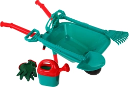 Atklājiet jautru bērnu dārza komplektu mazajiem dārzniekiem no 3 gadu vecuma. Komplektā ietilpst ratiņi, lielā lāpsta, lielie grābekļi, lejkanna, cimdi un mazs inventārs. Viegls un drošs dizains ar košām krāsām veicina kopīgas āra aktivitātes, mācīšanos un rotaļas un veido pozitīvu attieksmi pret dabu.