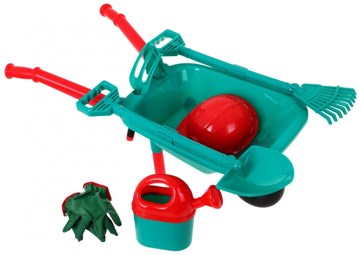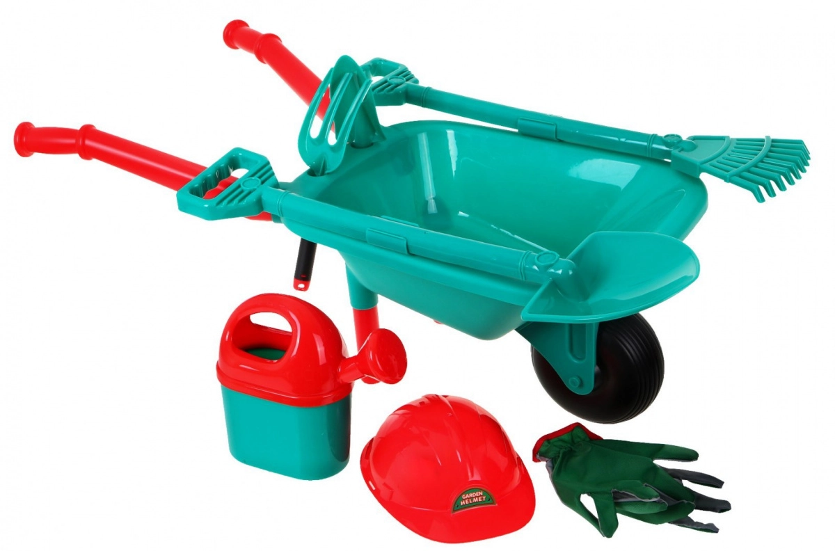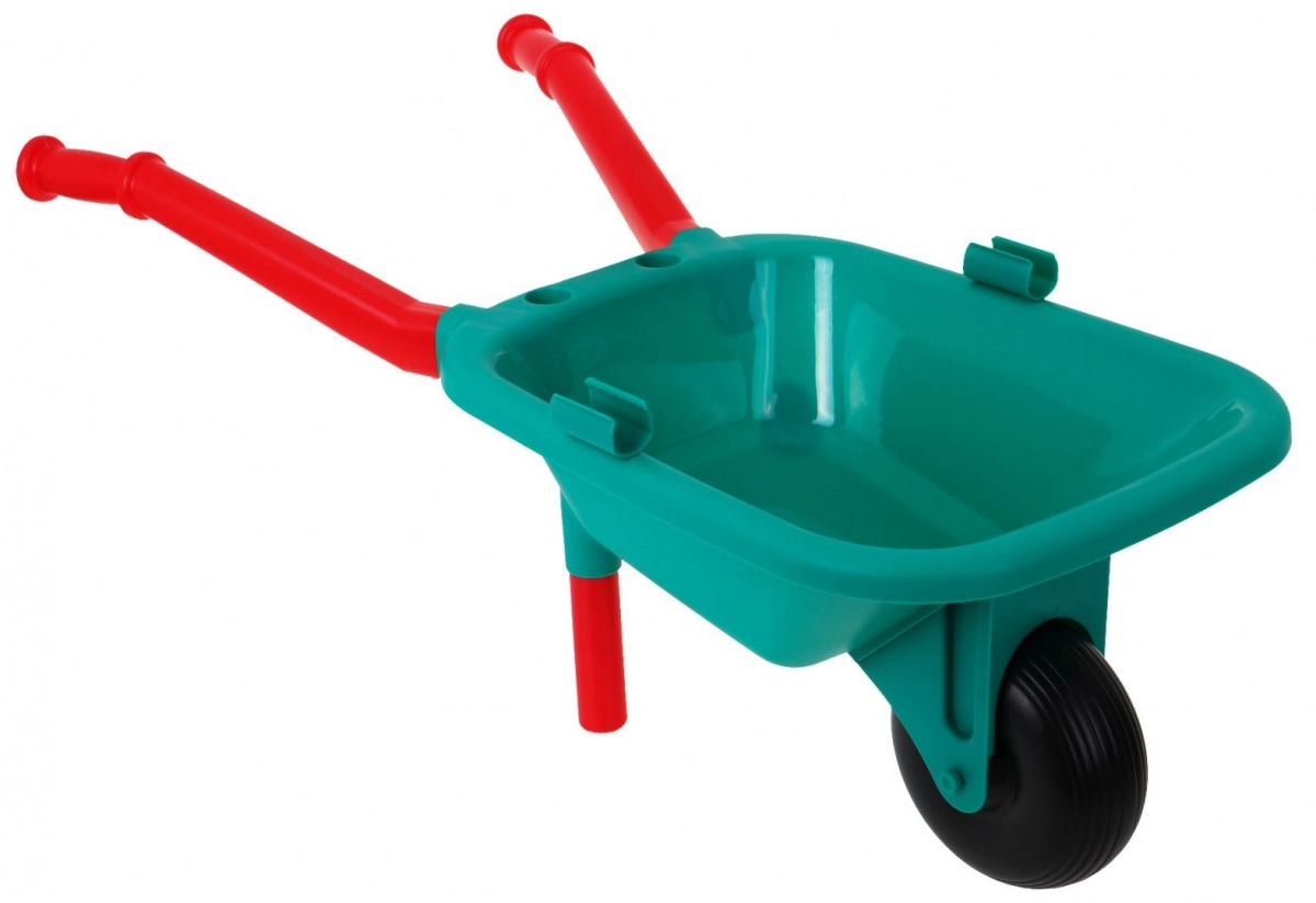Vieglie bērnu ratiņi ar izturīgu riteni un ērtiem rokturiem tiks galā ar lapām, augsni un rotaļlietām. Ir praktiski stiprinājumi instrumentu piestiprināšanai, lai viss vienmēr būtu pa rokai.