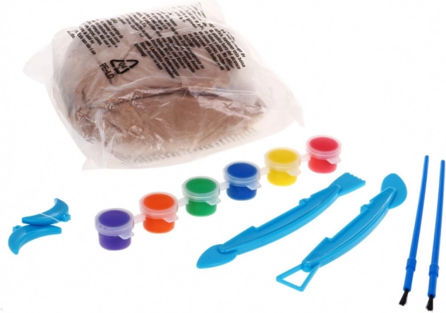 Iepakojumā ir viss nepieciešamais: 800 g māla, skulptēšanas rīki, statīvs un griešanas stīga ar rokturiem ērtai izstrādājuma noņemšanai no ripas. Komplekts ir ideāli piemērots prasmes, roku–acu koordinācijas un mākslinieciskās izteiksmes attīstīšanai.