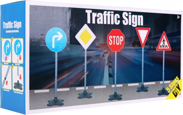 Aizraujošs un izglītojošs komplekts mazajiem braucējiem no 3 gadu vecuma, kas ietver piecas reālistiskas ceļa zīmes uz stabiliem statīviem. Bērni rotaļu veidā apgūst pamata ceļu satiksmes noteikumus – mājās, dārzā vai rotaļu laukumā. Komplekts veicina drošu braukšanu, satiksmes noteikumu apguvi un motorikas attīstību.